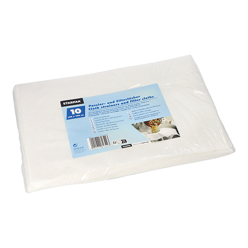 Deze witte passeerdoekjes zijn onmisbaar in de keuken voor het moeiteloos filteren van sauzen, bouillon of andere vloeistoffen. Gemaakt van sterk, ademend polyester zijn ze hygiënisch in gebruik en ideaal als eenmalig alternatief voor katoenen doeken. De doeken zijn ruim van formaat (100x100cm) en kunnen eenvoudig op maat worden geknipt. Met deze set van 10 ben je goed voorbereid voor al je culinaire avonturen, perfect voor zowel thuis als in de professionele keuken.