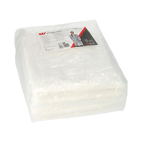 10 “WORK-INN/PS” Bezoekersjas, PP 142 cm x 112 cm wit met drukknopen