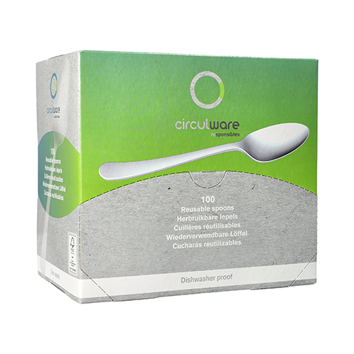 100 “Circulware” Herbruikbare lepels PP-MF 19 cm wit “Gaia” extra stabiel, in buffetbox