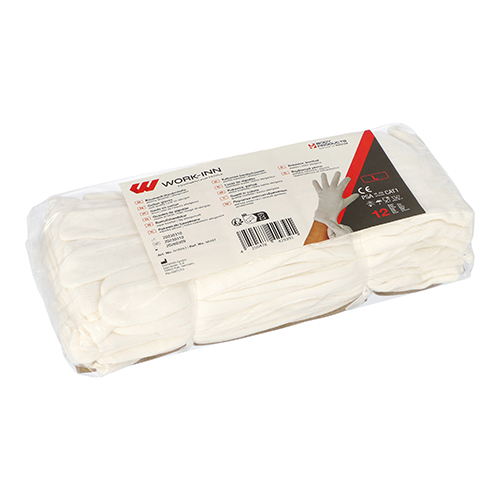 12 Paar “WORK-INN/-PS” Handschoenen, katoen wit Maat: L