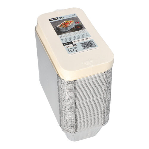 Deze handige aluminium schalen zijn perfect voor het portioneren van maaltijden, snacks of desserts. De schalen hebben een inhoud van 0,7 liter en worden geleverd met een passend deksel van PE-gecoat karton, ideaal voor transport en bewaring. Het stevige aluminium zorgt ervoor dat ze niet snel vervormen, terwijl het hoekige ontwerp ruimtebesparend is. Deze schalen zijn perfect voor catering, foodtrucks of een gezellige picknick!
