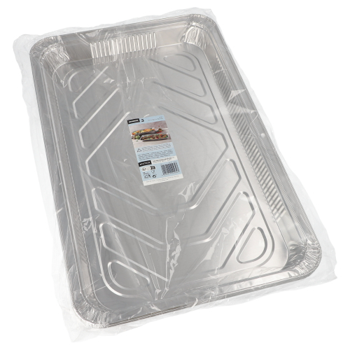 Deze stevige aluminium gastronoom schalen zijn ideaal voor het bereiden, presenteren en serveren van gerechten in professionele keukens en tijdens cateringevenementen. De schalen hebben een inhoud van 5,2 liter per stuk en zijn gemaakt van duurzaam aluminium, waardoor ze goed bestand zijn tegen intensief gebruik. Dankzij het standaard 1/1 formaat passen ze perfect in je bestaande gastronorm-systemen. Deze set van drie schalen is een onmisbare toevoeging voor elke chef-kok of gelegenheid waar je grotere hoeveelheden voedsel wilt bereiden en serveren.