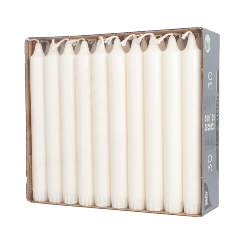 30 Kroonkaarsen Ø 2,2 cm · 20 cm wit van 100% stearine