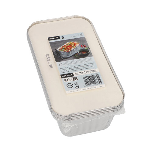 5 Schalen, aluminium + ingelegd deksel, PE-gecoat hoekig 1 l 5,4 cm x 11 cm x 21,3 cm