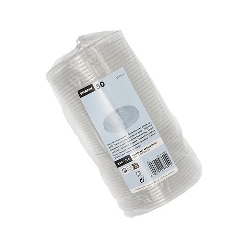 Maak je drankjes helemaal af met deze set van 50 Hurricane-deksels! Deze glasheldere deksels van stevig PET zijn perfect voor smoothies, frozen drinks en heerlijke desserts. Dankzij de kruis-opening zijn ze ideaal voor gebruik met rietjes, waardoor je van elke slok optimaal kunt genieten. Ze passen perfect op bekers van 0,3, 0,4 of 0,5 liter en zijn een onmisbaar accessoire voor feestjes, picknicks of gewoon thuis.