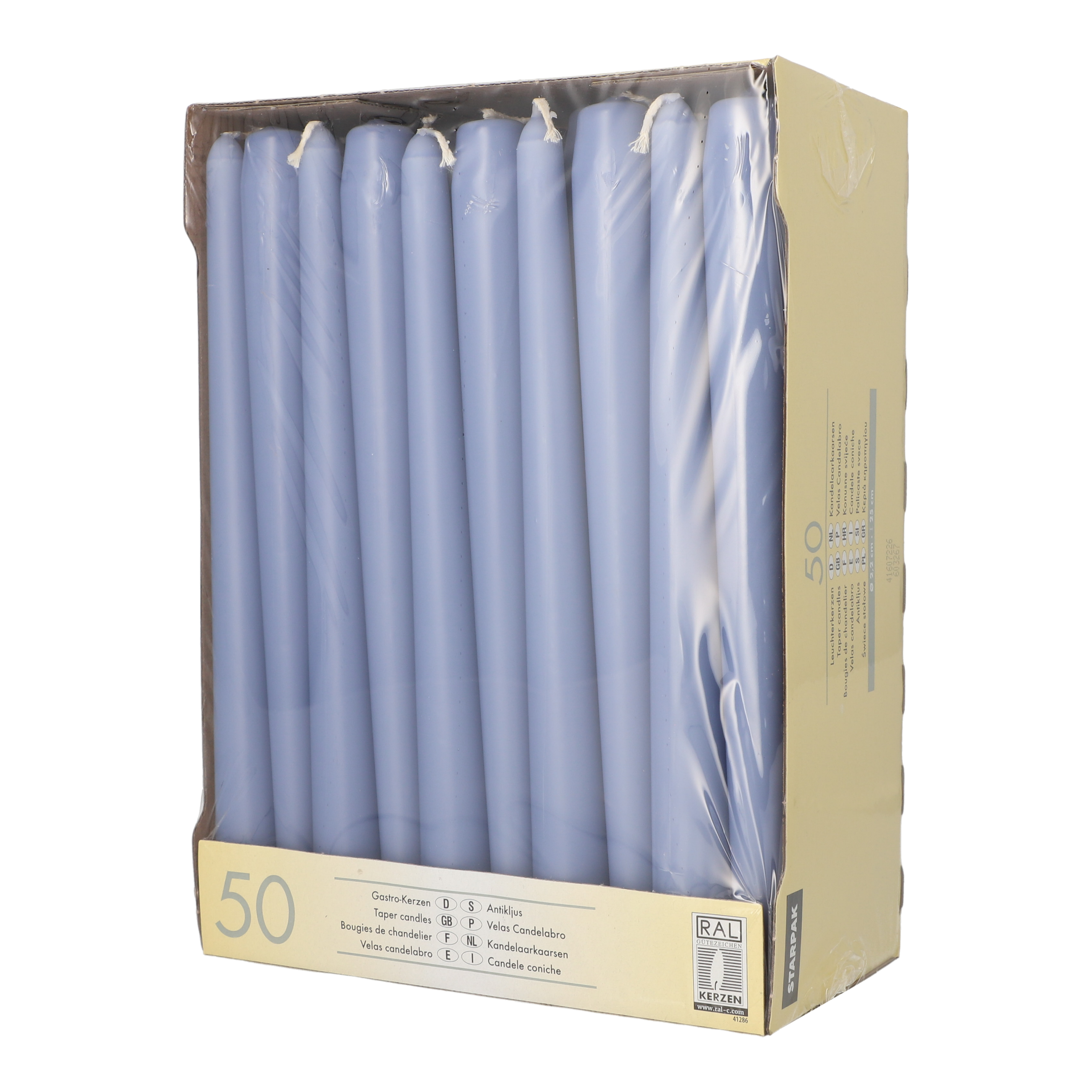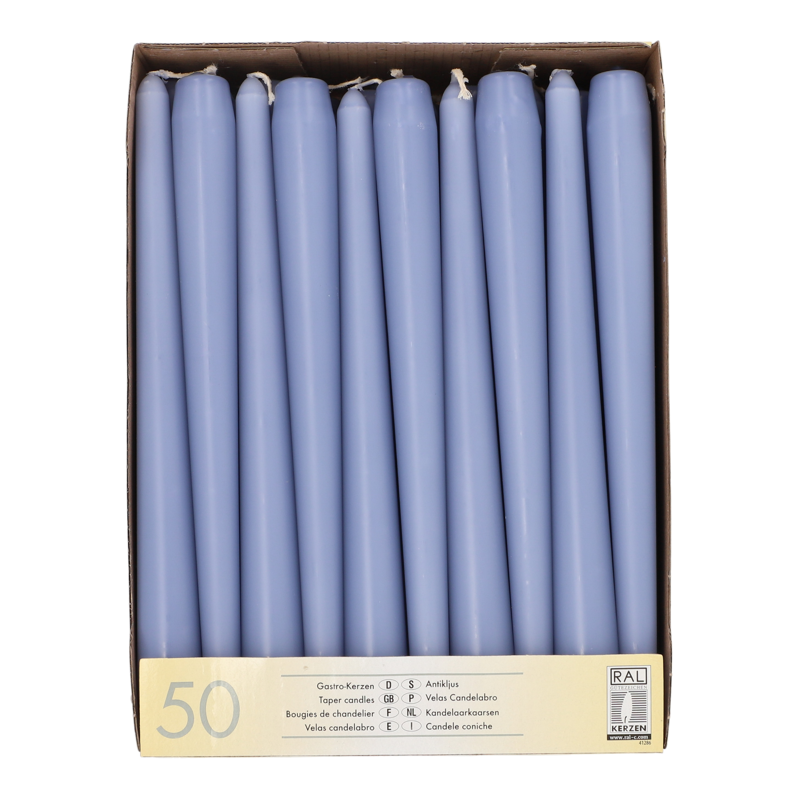 50 Kandelaarkaarsen Ø 2,2 cm · 25 cm sodablauw