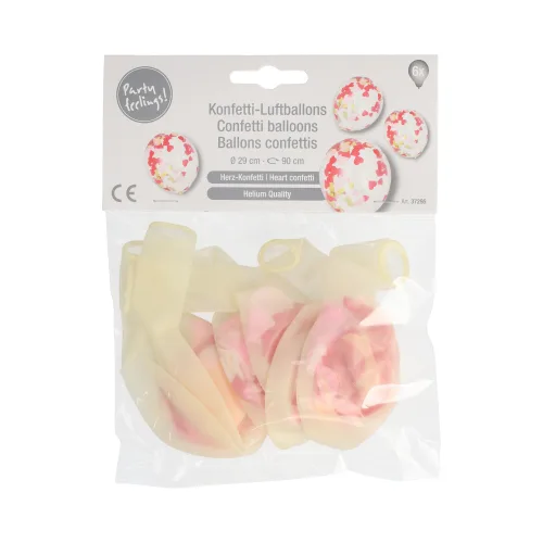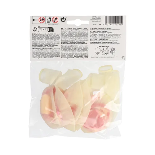 – Hoeveelheid confetti: 1-2 g per ballon, hartvormige confetti: Ø: 3 cm