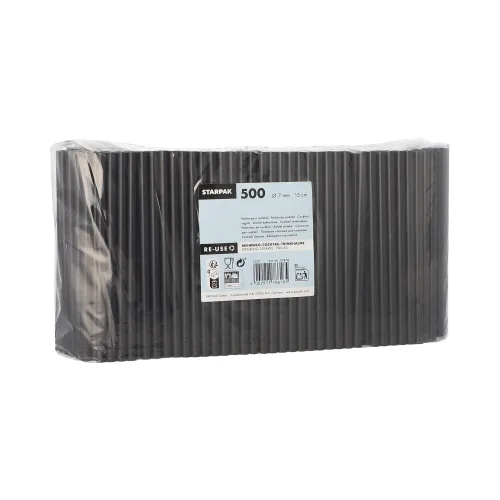 Deze zwarte herbruikbare drinkrietjes van hoogwaardig polypropyleen (PP) verduurzamen jouw drankenservice. Door de lengte van 15 cm en de diameter van 7 mm zijn ze geschikt voor cocktails, longdrinks en frisdranken. De reusable drinkrietjes zijn stevig, herbruikbaar en ze mogen in de vaatwasser en zodoende perfect voor gebruik in de horeca, op events, foodtrucks of feestjes.