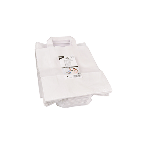Deze witte papieren draagtassen zijn ideaal voor het meenemen van boodschappen, cadeaus of andere items. De stevige tassen zijn gemaakt van sterk kraftpapier en hebben handige handvatten om comfortabel te dragen. Dankzij het FSC® keurmerk weet je zeker dat het papier afkomstig is uit verantwoord beheerde bossen en zijn ze een milieuvriendelijke keuze. Met een draagkracht tot 6 kg zijn ze geschikt voor een breed scala aan gebruik, van de supermarkt tot de retail. Perfect voor de dagelijkse boodschappen, een leuke markt of om cadeaus stijlvol te presenteren!