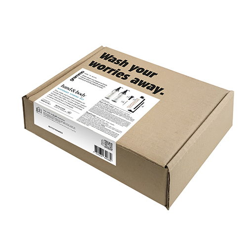Hand & Body Starter Kit “grammo” , Pumpspender inkl. Wandhalter schwarz