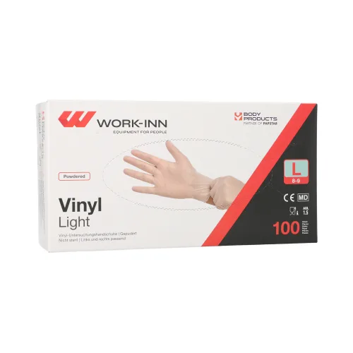 Handschoenen vinyl gepoederd Light transparant maat L set van 100 WORK-INN