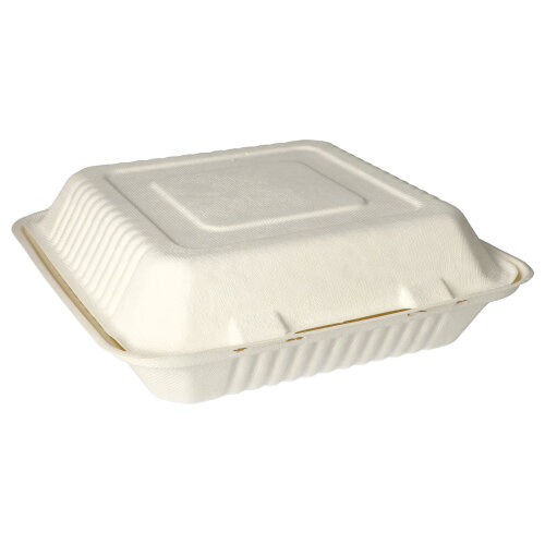 Deze witte menuboxen van suikerriet zijn perfect voor het serveren van diverse gerechten, van hamburgers tot salades. Gemaakt van bagasse, een duurzaam restproduct van suikerriet, zijn deze bakjes een milieuvriendelijk alternatief voor traditionele plastic verpakkingen. Ze zijn stevig, lekdicht en zelfs geschikt voor gebruik in de magnetron tot 800W. Met een set van 300 stuks ben je goed voorbereid voor elke gelegenheid, ideaal voor foodtrucks, evenementen of de dagelijkse takeaway service.