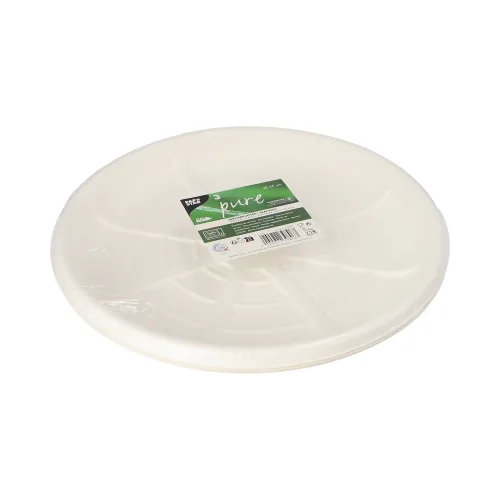 Deze platte serveerschaal van suikerriet combineert vele pluspunten: stevigheid, functionaliteit en milieuvriendelijkheid. Danzij de grote diameter van 35 cm kan je dit plat serveerbord gebruiken voor het stijlvol verstrekken van zeevruchten, voorgerechten en antipasti, snacks en desserts. De serveerplaat is gemaakt van bagasse, een reststroomproduct van de suikerindustrie. De serveerschaal is niet alleen mooi vormgegeven, door het gladde oppervlak oogt het ook mooi.
