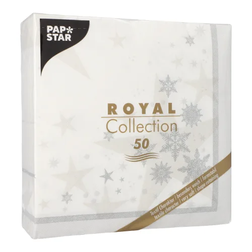 Servetten papier wit 1/4 vouw 40 cm x 40 cm set van 50 ROYAL Collection Stars and Snowflakes