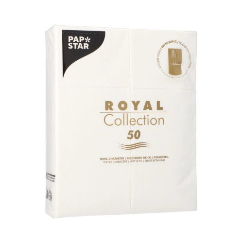 De witte pochettes uit de ROYAL Collection met de praktische bestekvouw combineren een stijlvolle presentatie en functioneel design met elkaar. Ideaal voor de horeca, op het terras, events of feestjes en partijtjes om het bestek elegant en hygiënisch te verstrekken. De textiele uitstraling van de bestekservetten wordt functioneel afgerond door het zachte materiaal, uitstekende vouwbaarheid en vormstabiliteit. De bestekservetten zijn FSC-gecertificeerd.