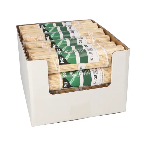 Deze sjasliekstokjes zijn perfect voor het maken van heerlijke spiesjes op de barbecue, tijdens een picknick of een gezellige avond met vrienden. De set bestaat uit 200 stevige stokjes van natuurlijk bamboe, elk 20 centimeter lang en 2,5 millimeter dik. Omdat ze van FSC®-gecertificeerd bamboe zijn gemaakt, weet je zeker dat ze afkomstig zijn uit duurzaam beheerde bossen. De stokjes worden geleverd in een handige displaydoos met slipdeksel, waardoor ze makkelijk op te bergen zijn. Ideaal voor de barbecue-liefhebber, een groot feest of gewoon voor een snelle, lekkere hap!