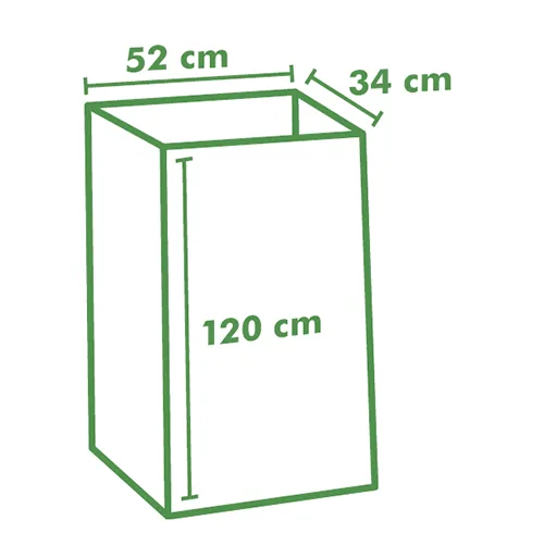 Deze stevige papieren vuilniszakken met een inhoud van 240 liter zijn ideaal voor het verzamelen van composteerbaar afval in de tuin of keuken. Gemaakt van 2-laags Kraftpapier zijn ze vochtbestendig en biologisch afbreekbaar. Met hun afmeting van 120 x 52 x 34 cm passen ze in vrijwel elke compostcontainer. Dankzij de composteerbaarheid volgens DIN EN 13432, draag je bij aan een duurzame leefomgeving. Perfect voor tuiniers, milieubewuste huishoudens of grote schoonmaakprojecten!